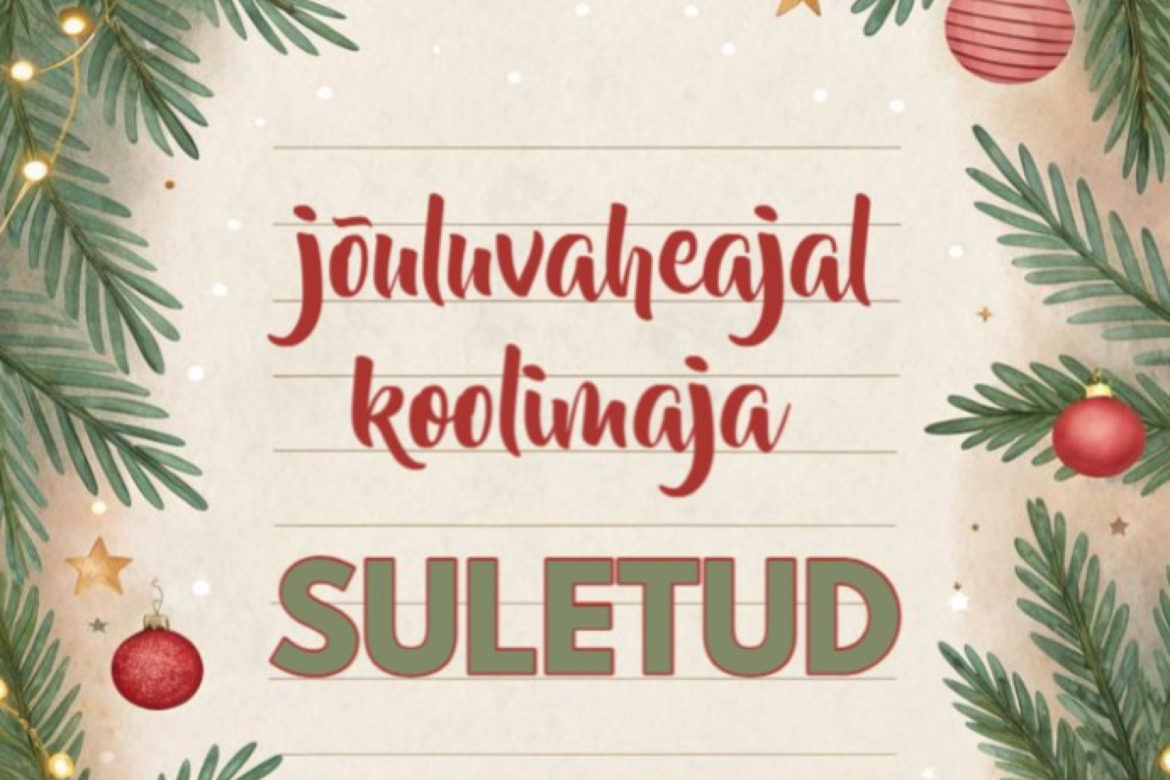 Anname teada, et koolimaja on 22.12.2025-04.01.2026. a. suletud, kütet on vähendatud.